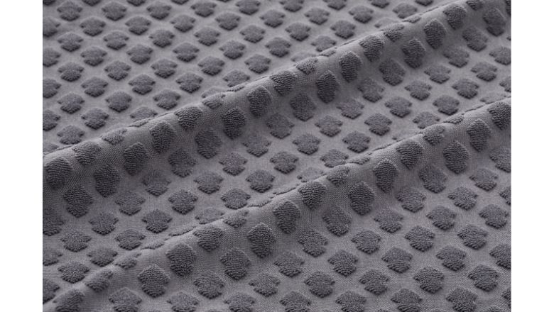 実はこの生地の開発にはとても苦労しまして……。凹凸がなさすぎると擦れる心地よさが生まれないし、ありすぎても今度はモコモコになって縫製がうまくいかないんです。スタイリッシュな見た目と心地よさを両立するために何社かのメーカーさんにお声かけをして、ようやく形にすることができたこだわりの生地なんです。