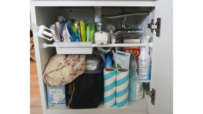洗面台下収納のごちゃつき、突っ張り棒で整います